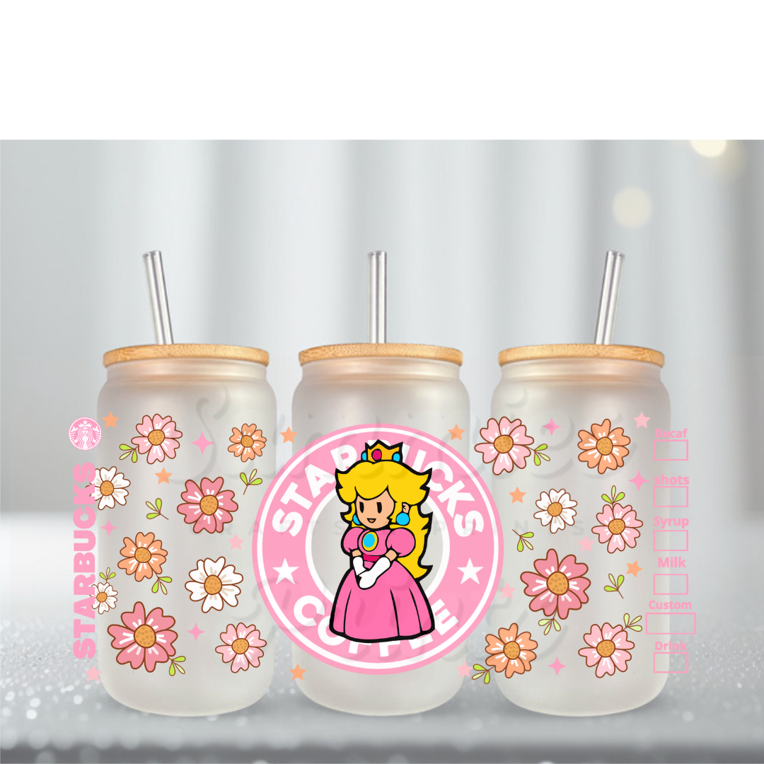 Mario Princess Peach Flowers UV DTF Cup Wrap
